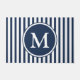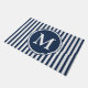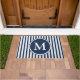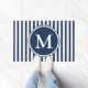 Elegant Navy Blue Stripes Monogram Doormat