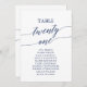 Elegant Navy Blue Table Number 21 Seating Chart