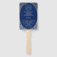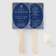 Modern, elegant, luxury navy blue wedding monogram hand fans with monogram at the top, unique deco-art gold floral frame and simple calligraphy script.