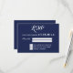 Elegant navy blue and white wedding RSVP cards with navy blue background and white changeable text and decorative white graphics