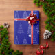 Elegant Navy Blue White Christmas Pine Tree Wrapping Paper