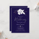 This elegant wedding item features modern script typography a navy blue background, White and gold script and white and gold rose and leaves in a modern design. Budget prices ensure best quality while making great savings. To view matching items see the attached collection. For additional items ask LeahG.