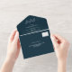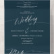 Elegant navy blue white script modern wedding all in one invitation