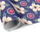 Elegant Navy Blue with Cream Flowers Wrapping Pape Wrapping Paper