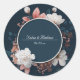 Elegant Navy & Blush Floral Round Wedding Sticker