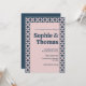 Invite guests to your retro-chic celebration with our Blush Navy Retro Geometric Mid Century Wedding Invitation. Featuring a captivating geometric pattern in a sophisticated colour palette, this design blends vintage charm with modern elegance. Perfect for couples seeking a timeless yet trendy wedding vibe. Explore the entire collection for coordinating stationery to complete your wedding look.