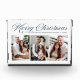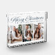 Modern holiday photo block featuring "Merry Christmas" in an elegant navy calligraphy script with a white background. The photo block features 3 of your favourite vertical photos. Personalise the photo block by adding your family name and the year.