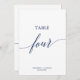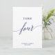 This elegant navy calligraphy table four table number is perfect for a simple wedding. The neutral design features a minimalist card decorated with romantic and whimsical typography. The card prints on the front and back (double-sided). Other table numbers in the collection are sold separately.