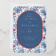 This elegant foil invitation features a classic blue and white color palette, adorned with intricate floral motifs that create a sophisticated and timeless look. The design showcases an oval central panel framed by ornate botanical illustrations, adding a touch of vintage charm. With clean, modern typography, the layout is both inviting and easy to read, making it perfect for formal weddings or upscale events. The overall mood exudes elegance and romance, ideal for celebrating a special occasion in style.