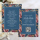 Elegant Navy Floral Teal RSVP QR code Wedding Invitation
