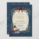 This elegant Christmas party invitation features a navy background, classic gold accents, festive greenery, and a warm lantern with wrapped gifts. The hand-painted style adds a cozy holiday charm perfect for winter gatherings. Ideal for hosts who want a traditional, timeless Christmas aesthetic with rich colors and seasonal details.