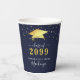 Elegant personalised navy blue and gold graduation party paper cups featuring a faux metallic gold foil graduation cap, gold confetti, handwritten script typography and class year with CONGRATULATIONS and your graduate's name against an editable navy blue background colour you can change to a school colour or coordinating party theme colour in EDIT. ASSISTANCE:  For help with design modification/personalisation, colour change, transferring the design to another product or would like coordinating items, contact the designer BEFORE ORDERING via Zazzle Chat or makeitaboutyoustore@gmail.com.