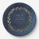 Elegant Navy & Gold Olive Branch Wreath Wedding Paper Plate