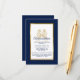 Provide your guests with all of your wedding accommodation or other pertinent details with this elegant enclosure card featuring modern script, navy blue text including artistic kissing seahorses and metallic gold frame on the front of the card. A navy blue background is on the front and back.
