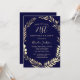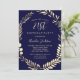 Elegant Navy Gold Watercolor 21st Birthday Invitation