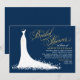 Elegant Navy Gold Wedding Gown Bridal Shower Invitation