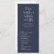 This elegant wedding flat program features an elegant calligraphy and simple sans serif typography font on a navy blue background for a clean minimalist and modern look, which is a beautiful way to inform your guests the order of your wedding ceremony. The simplicity of this design adds a touch of elegance to your wedding. It works well with many wedding themes and definitely a great addition to your wedding stationery. Just customise the names and wording in a few easy steps and personalise the QR Code and hashtag to give your program a nice personal touch.