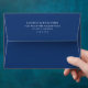 This wedding envelope features a minimalist design with a deep blue background and crisp white text, creating an elegant contrast. The layout is clean and centered, emphasizing the names "Lauren & Benjamin" in a sophisticated serif font, followed by their address details. Its simple yet formal style makes it perfect for weddings or other special occasions, conveying a sense of professionalism and sophistication. The absence of additional graphics keeps the focus on the essential information, ensuring clarity and versatility for various uses.