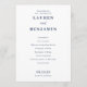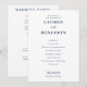 This wedding program features a clean, minimalist layout with ample negative space on a white background, creating an elegant and sophisticated look. The deep navy blue text contrasts beautifully against the backdrop, enhancing readability and formality. Utilising crisp, vector-based typography, the design combines bold serif fonts for names with cursive script for "and," adding a touch of elegance. Perfect for couples seeking a modern yet traditional aesthetic, this program is ideal for weddings that celebrate clarity and simplicity.