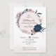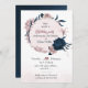 Elegant navy blue and pink flowers and some beautiful leaves birthday party invitation