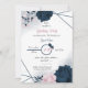 Elegant navy blue and pink flowers and some beautiful leaves floral birthday invitation