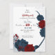 elegant navy & red floral botanical birthday invitation