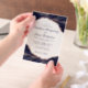 Invite your guests to share in your wedding celebration with this modern vellum invitation design featuring classic shades of navy blue agate with metallic rose gold foil veins.