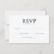 This wedding RSVP card features a minimalist design with clean lines and ample white space, creating an elegant and sophisticated look. The deep navy text contrasts beautifully against the crisp white background, emphasizing clarity and simplicity. Classic serif fonts add a touch of formality, while the structured layout ensures easy readability. Perfect for formal events, this card combines functionality with understated elegance, making it ideal for couples seeking a refined yet straightforward invitation style.