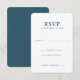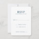 This elegant wedding RSVP card features a minimalist design with clean lines and ample white space, creating a sophisticated and modern look. The dark navy blue text on a crisp white background offers a striking contrast, enhancing readability and formality. With customizable fields for names and responses, the classic serif typography adds a touch of timeless charm. Perfect for formal occasions, this card conveys professionalism and grace, making it an ideal choice for couples seeking a refined invitation experience.