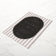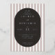 This elegant wedding invitation features a classic rectangular layout with vertical stripes in alternating white and light gray, creating a sophisticated backdrop. The focal point is an oval shape filled with dark navy color, where the text is arranged hierarchically using a mix of serif and sans-serif fonts for contrast and readability. The design exudes formality and tradition, perfect for celebrating a special occasion with a refined touch. Customizable elements allow personalization while maintaining a timeless aesthetic ideal for any formal event.