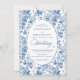 Make a refined first impression with this wedding invitation featuring classic French toile de jouy roses in elegant shades of navy blue, royal blue, dusty blue, and deep blue. Inspired by timeless European floral design, this invitation blends traditional sophistication with modern elegance, perfect for a classic, romantic, or formal wedding celebration.