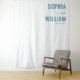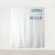 This wedding backdrop features a minimalist and elegant design with a clean, off-white background that highlights the deep navy blue text. The layout is vertically oriented, centering bold serif fonts for the names "SOPHIA" and "WILLIAM," complemented by a delicate cursive script for the word "and." The overall style exudes modern sophistication with classic touches, making it perfect for creating an understated yet refined atmosphere at your special event.