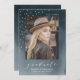 Modern and chic photo graduation announcement featuring your graduate's senior photo with an elegant script font and faux gold foil confetti against a navy blue watercolor background. Personalise the watercolor graduation announcement with your graduate's class year, name, and school.