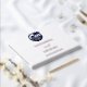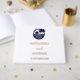 Capture memories of your special day with this personalised coastal wedding guest book, featuring a crisp graphic design of a dark navy blue palm tree, the rising sun over the ocean, and peaceful birds framed in a navy circle, all set against a fresh white background. Perfect for a palm tree wedding by the sea, this design evokes the beauty of a tropical paradise, making it ideal for a beach wedding or summer celebration. The cover is adorned with elegant real gold foil typography and graceful calligraphy script fonts, creating a chic and stylish keepsake your guests will love signing.
