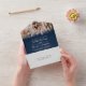 This modern and elegant wedding invitation and rsvp postcard bundle perfect for the contemporary couple. It features a pretty and trendy white monogram initial design with matching typography on top of a simple navy blue background. It also includes four photos of the lovely couple. It's minimalist, stylish, personal, and unique for your special event!