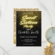 Elegant neon Gold Black retro Sweet 16th Birthday Thank You Card