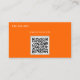 This business card is featuring a neon orange solid colour background ,elegant font with swashes . On the other side there is a QR code to be replaced with your one .