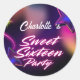 Elegant neon Pink Black Retro Sweet 16th Birthday Classic Round Sticker