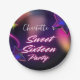 Elegant neon Pink Black retro Sweet 16th Birthday Paper Plate