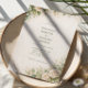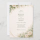 A soft and sophisticated design featuring a textured neutral background accented with delicate greenery and cream floral arrangements. The subtle botanical elements and muted color palette create a calm, elegant, and timeless aesthetic. The refined composition is perfect for announcing a special occasion with a natural and graceful style.