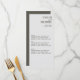 Flat Menu Card, Size: 10.2 cm x 23.5 cm / 4" x 9.25", Paper: Signature Matte