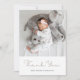 Baby shower photo thank you cards featuring warm and neutral gray color with ribbon bow design.