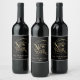 Modern black wine labels for your New Year Eve party or gifts featuring "Happy New Year" written in an elegant gold script. Personalise with your name and the new year.
