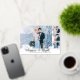 Elegant, stylish newlyweds holiday greeting card featuring a real metallic foil MARRIED & BRIGHT title (shown in silver; other colours available on the ordering page) in a modern hand lettered calligraphy script with a photo collage of 4 pictures on the front and the back features one full-bleed photo. ASSISTANCE: For help with design modification or personalisation, colour change, resizing or transferring the design to another product, contact the designer BEFORE ORDERING via the Zazzle Chat MESSAGE tab below or email makeitaboutyoustore@gmail.com.