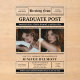 This graduation invitation features a newspaper-inspired design with a structured, vintage aesthetic. It includes a bold headline at the top, styled like a newspaper banner, followed by a large announcement of the occasion in serif typeface. Two side-by-side photos of the graduate are framed neatly in the centre. Below, the event details, such as the date, time, location, and RSVP, are displayed in a clean, bordered section. A bold footer at the bottom highlights the School name and graduate's class, tying the design together with a monochromatic black-and-white colour scheme for a formal and elegant look.