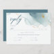 A beach-themed wedding RSVP card with meal choice template that features a painted, abstract watercolor scene of a beach and waves with a gold ink pour effect (the gold is a digital effect, not real foil!) and modern calligraphy. Classy and elegant, simple and modern, it is a lovely choice for a beach wedding during any season, for a modern couple.