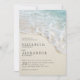 This elegant summer beach wedding invitation features a close-up photo of a beach shoreline with an ocean wave and seafoam framing the left-justified classic typography.