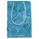 Elegant Ocean Blue Argyle Pattern Merry Christmas Medium Gift Bag