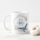 This ocean themed mug is designed with a blue and pink watercolor floral wreath, with a blue whale at the bottom. The middle of the wreath includes a customizable monogram, that you can personalize with a name and initial.