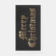 Old English Lettering Merry Christmas Gift, Black and Gold Christmas Party Napkins, with Faux Gold Old English Typography on black background.